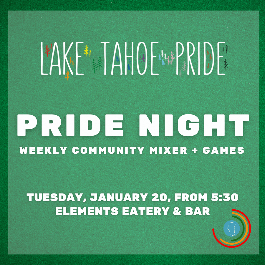 Every Tuesday, Lake Tahoe Pride hosts a social mixer at a restaurant, brewery, bar, beach, or other welcoming venue around South Lake Tahoe. Our diverse weekly mixers are a way for LGBTQIA+ people above 6,000 feet to make connections, build community, and find an extra bright spot in the week.